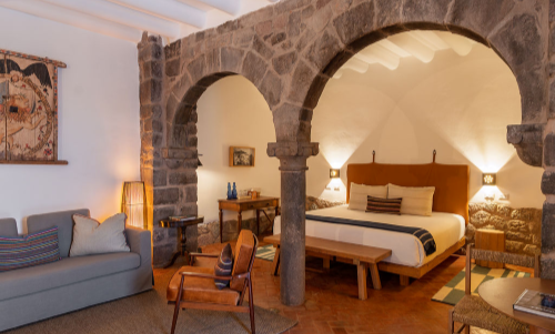late Bolivian artist Gastón Ugalde, this habitable work of art seamlessly blends nature, architecture, art and gastronomy. Built from volcanic stone and coral, the 5-star property features just 10 exclusive suites inspired by ancient Andean architecture, each with