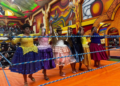“cholitas luchadoras” in El Alto - indigenous women wrestling in traditional dress
